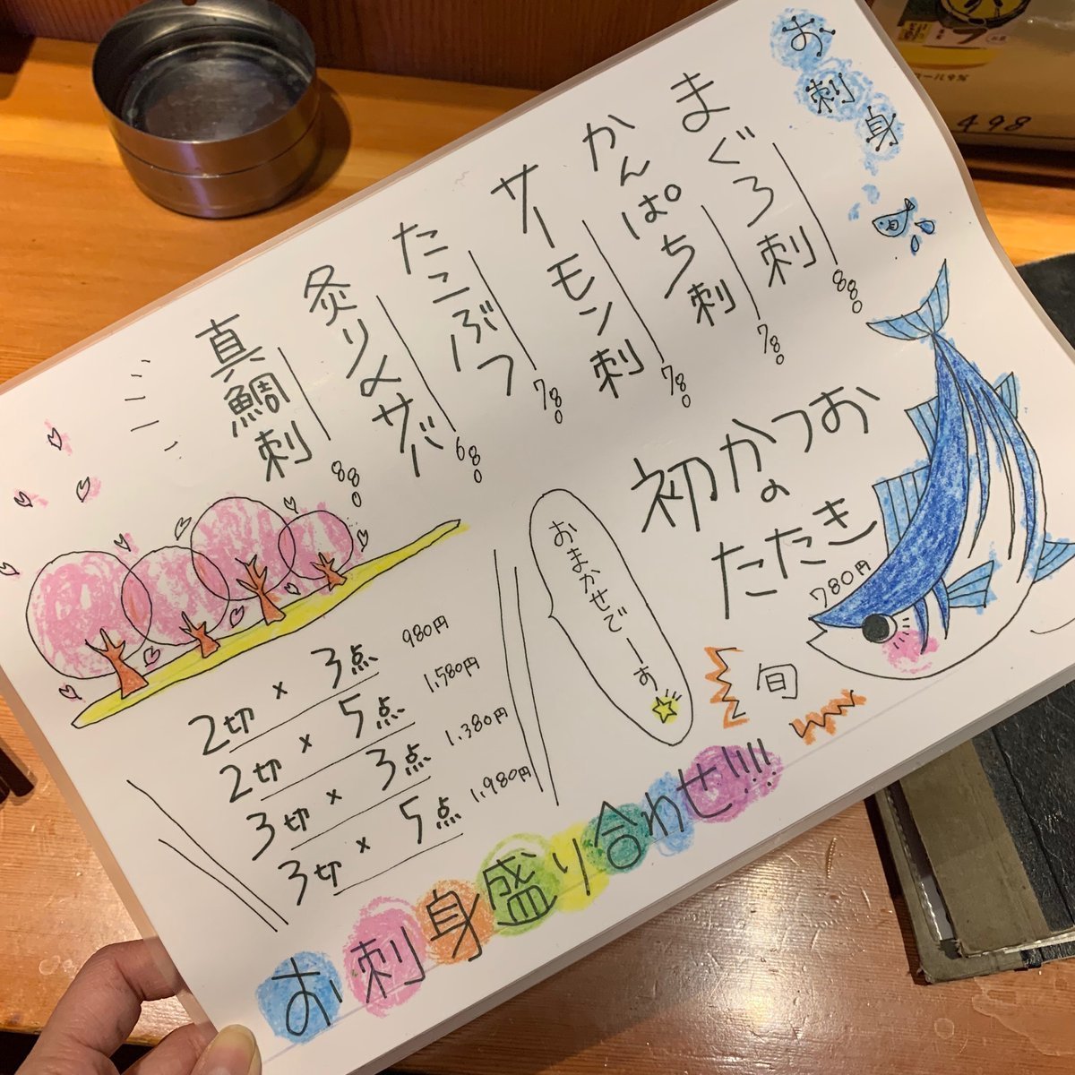 #初鰹 #かんぱち #手書きイラスト #高橋画伯 #送別会 #飲み放題 #予約受付中 #当日予約ok #思い出横丁 #大ガード交差点 #駅近 #夜景 #焼き鳥 #おでん #うなぎ #お鍋