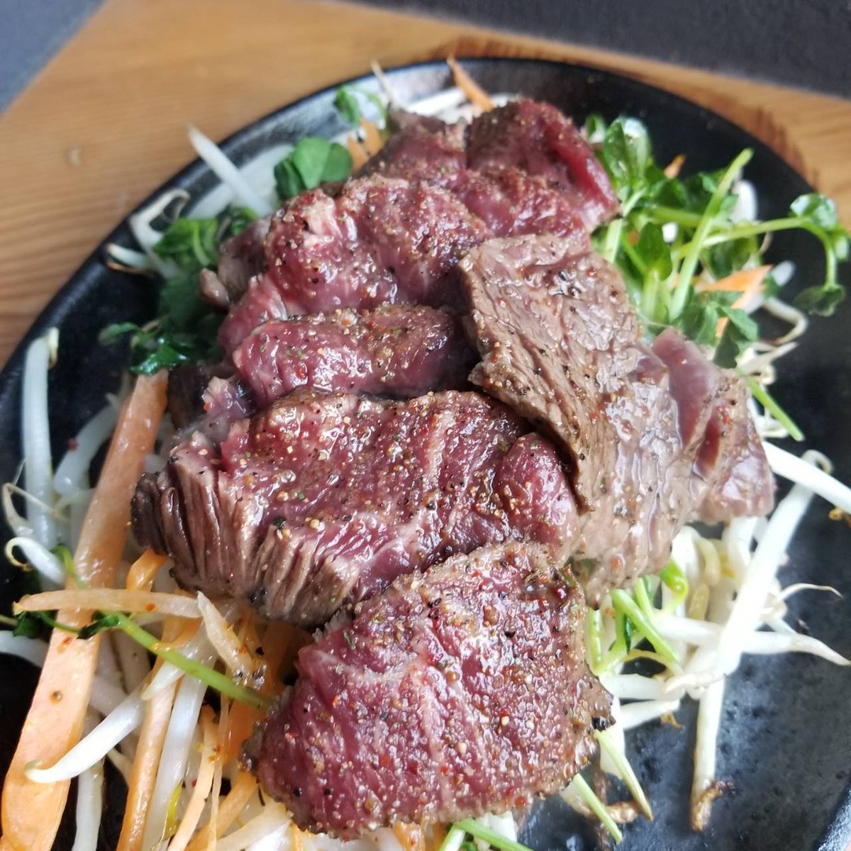 熱々っ!鉄板の牛ハラミステーキ🥩