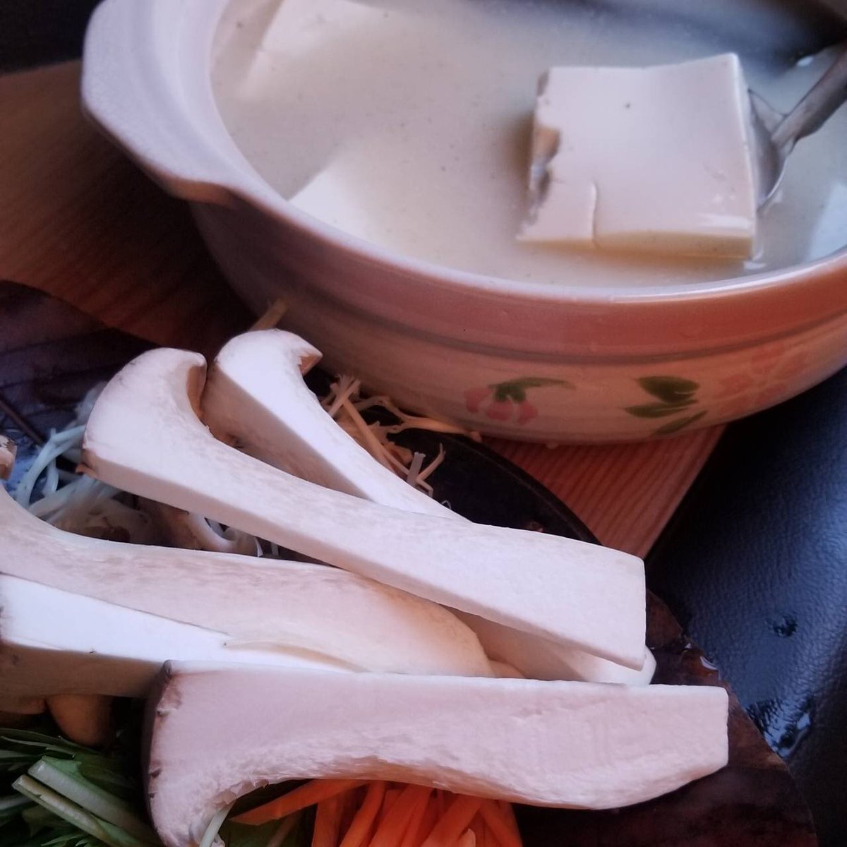 自家製の豆腐を遂に湯豆腐にしてしまいます。