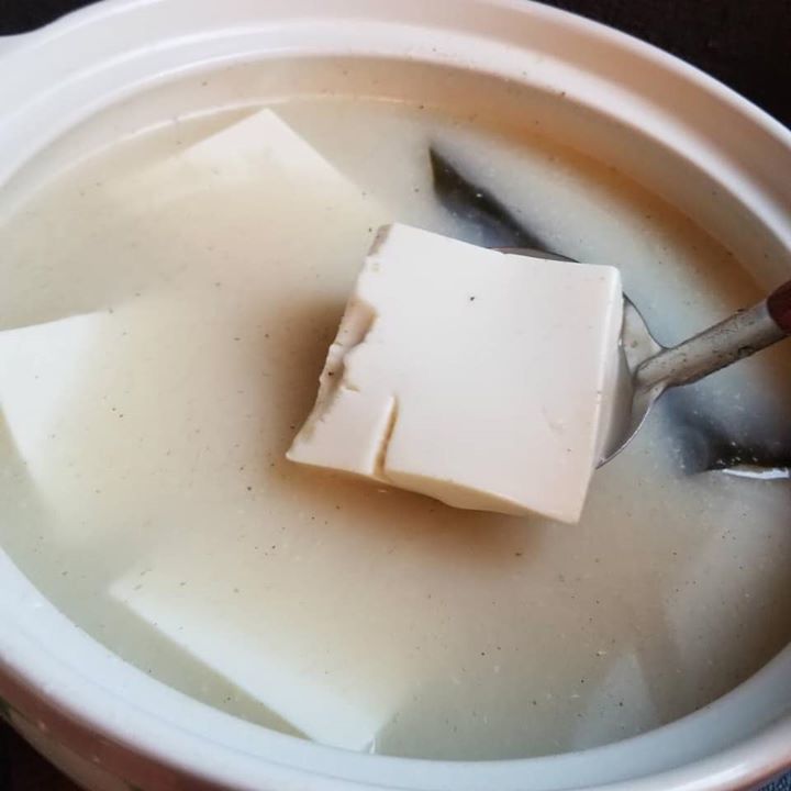 自家製の豆腐を遂に湯豆腐にしてしまいます。