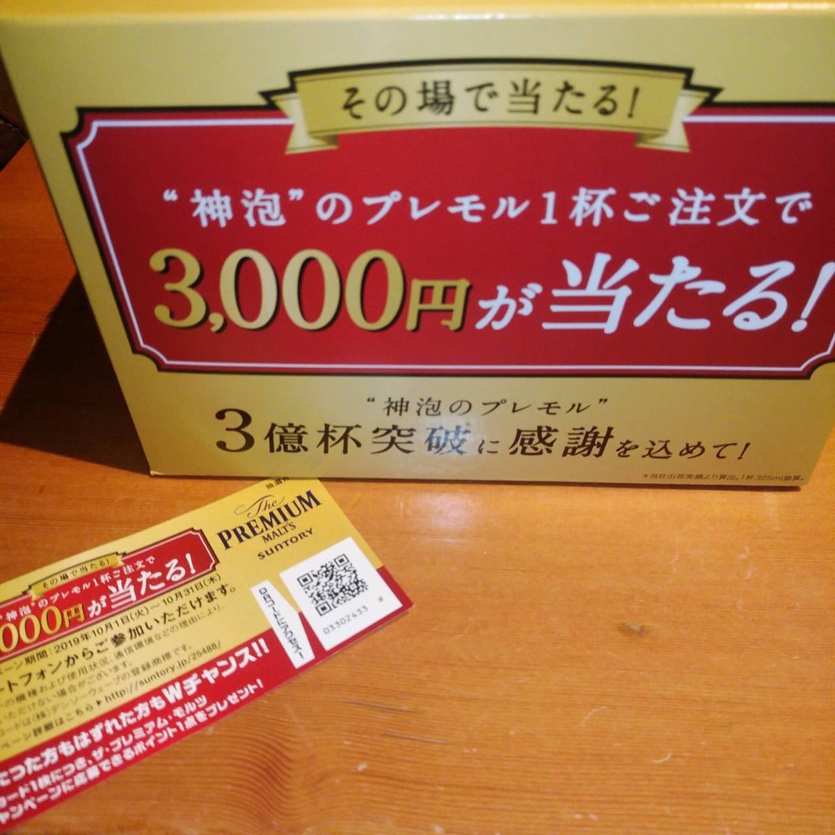 今来店された方にサントリーさんから3000円相当が当たる抽選券ゲットできますよ🙌