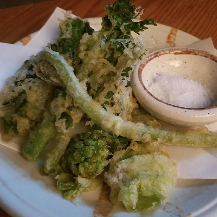 菜の花、こごみ、タラの芽、タケノコ、ふきのとう等々のほろ苦い山菜の天婦羅始めました🎵